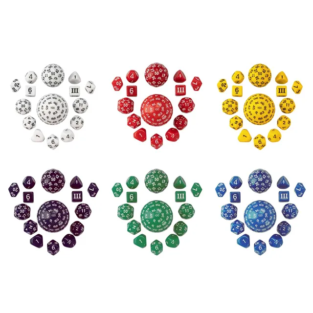 - Contains: 1*D3、1*D4、1*D5、1*D6、1*D7、1*D8、2*D10 (1 percentage die)、1*D12、1*D16、1*D20、1*D24、1*D30、1*D60 1*D100.